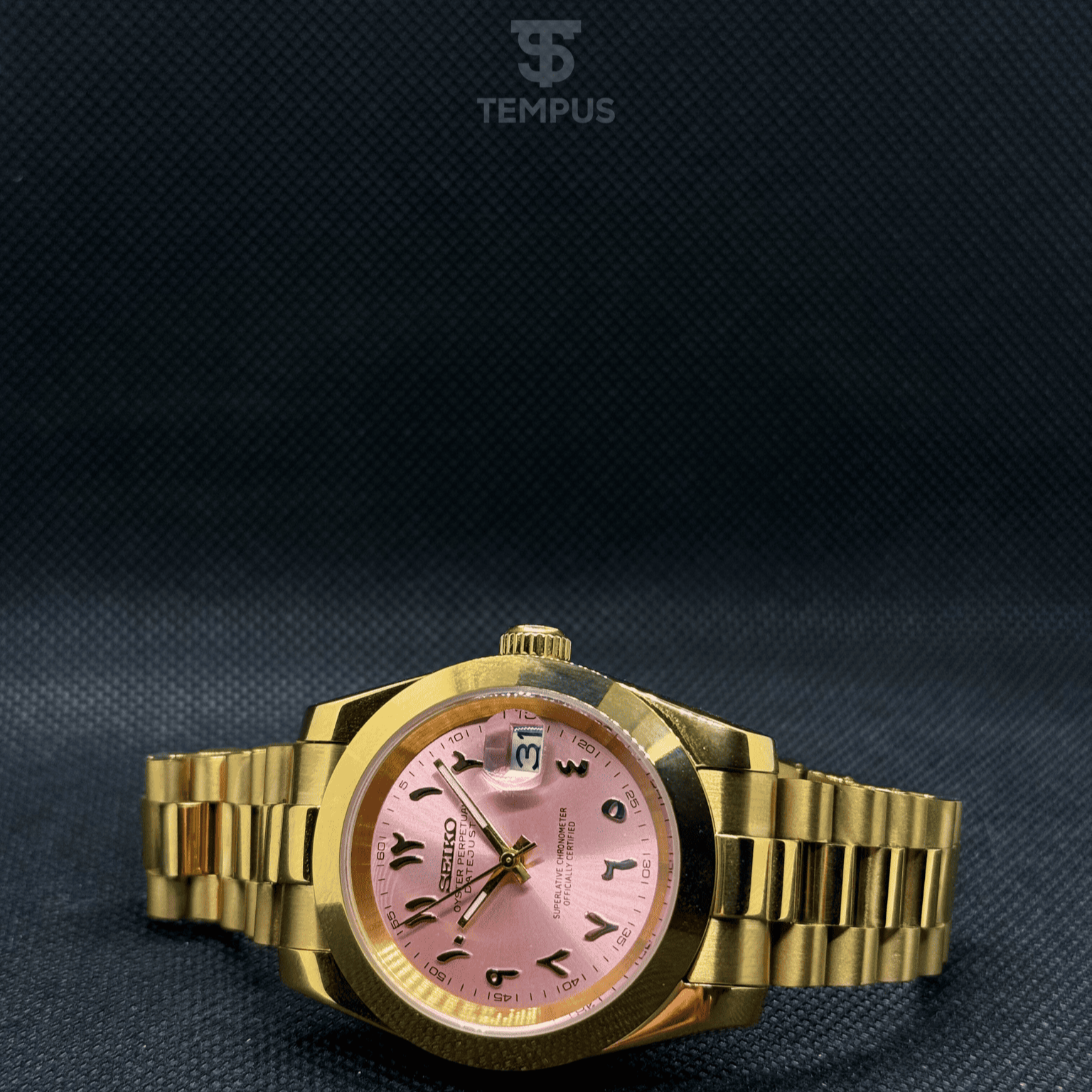 Utilizamos movimentos automáticos Seiko autênticos combinados com componentes aftermarket premium, garantindo fiabilidade e um acabamento refinado.